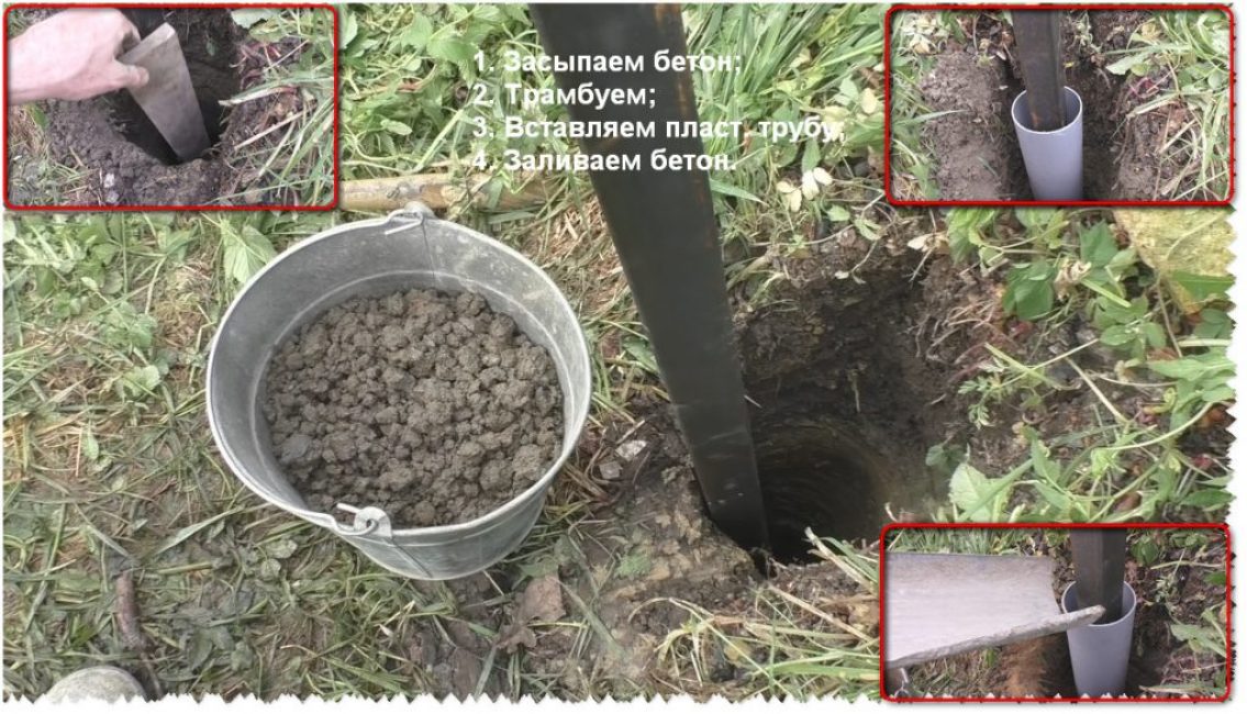 Для бетонирования столба забора потребуется: