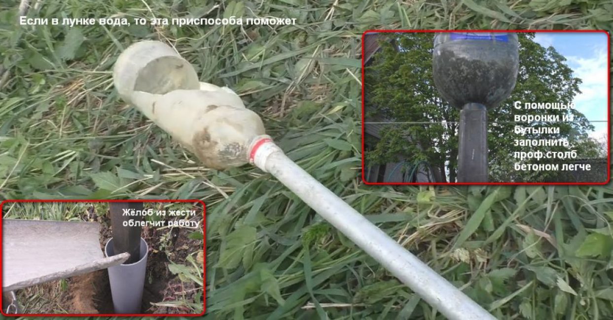 Для этого внутрь металлического столба будем заливать бетон. Это удобно делать с помощью самодельной воронки из пятилитровой бутылки.