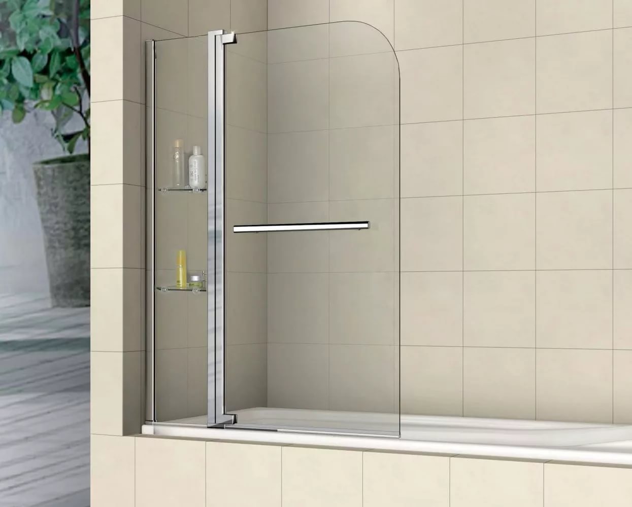 Распашные шторки состоят из нескольких стационарных створок, их может быть от 1 до 4, в зависимости от размера сантехники. Обязательно одна или две створки имеет распашное открывание по принципу обычной двери.