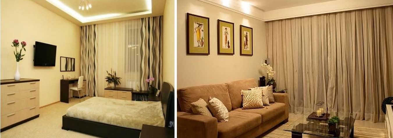 Гардины под бежевые обои подбирают в соответствии со стилем интерьера, размерами помещения, видом мягкой мебели и личными предпочтениями. Подходящих вариантов довольно много, среди них каждый сможет найти приемлемый, желанный и необычный.
