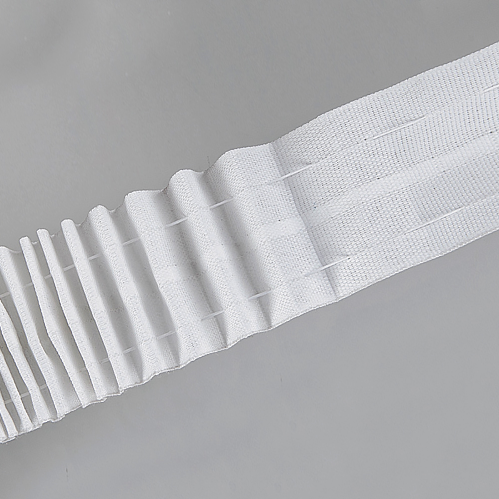Шторная лента. Необходимо приобрести шторную ленту со шнурками и петлями. Она пришивается по верхнему краю тюля, после чего стягивается, образуя складки. Теперь можно приступать к навешиванию на карниз. Для этого на него надеваются крючки, на которые и будет вешаться текстиль.