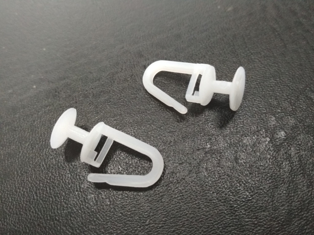 Зажимы. Распространенный метод крепления, во время которого используются пластмассовые или металлические клипсы, либо же прищепки на кольцах. Зажимы очень практичные и позволяют за несколько секунд повесить полотно и так же быстро снять его. Чтобы повесить тюль, необходимо нажать на зажимы и прищипнуть их на тюль через равные промежутки.