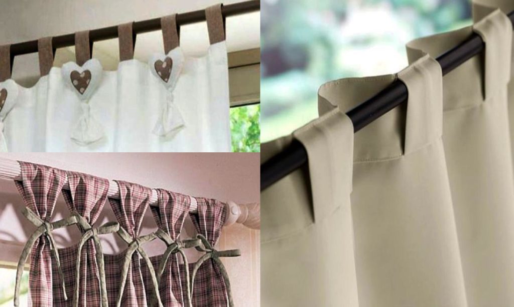 Петли. Шить петли необходимо либо из материала тюли, либо из тесьмы. После чего они пришиваются за оба края к верхней части занавески и продеваются на карниз. Выглядит такой вариант очень красиво и стильно.