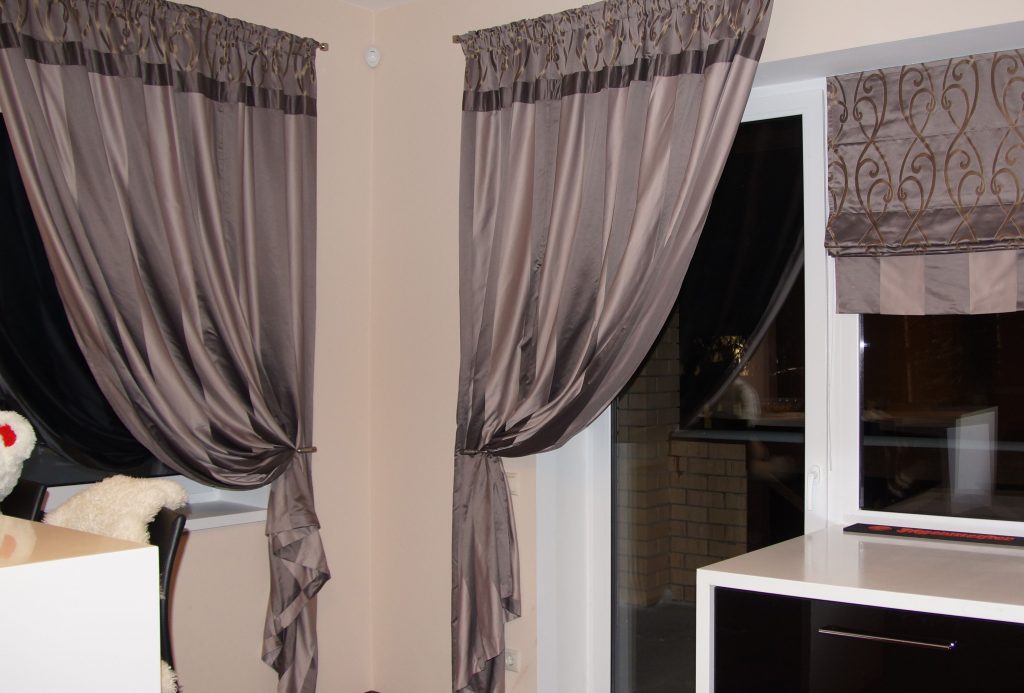 4. Гармоничный внешний вид – единая композиция штор для балконной двери и окна.