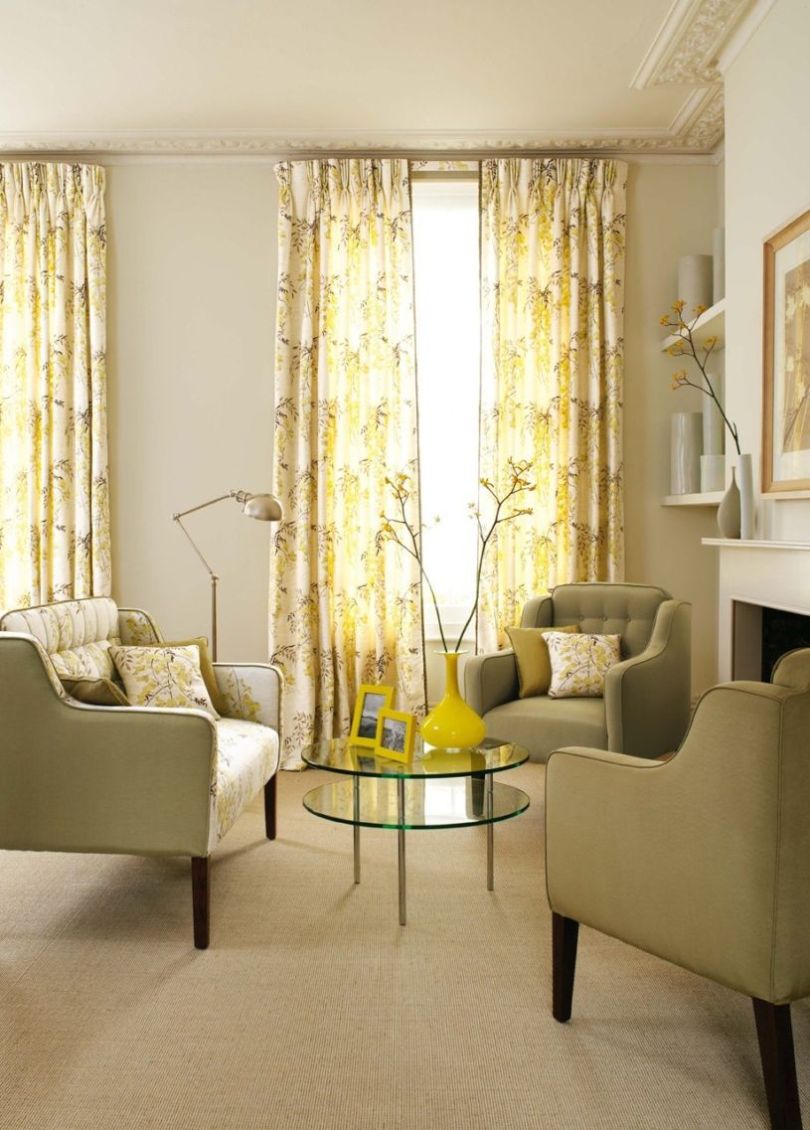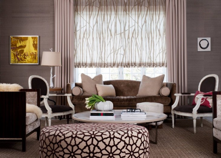 Главное правило при выборе материала с рисунком – шторы должны органично вписываться в интерьер комнаты и дополнять его. Обязательно присутствие деталей, объединяющих шторы с мягкой мебелью, обоями, напольным декоративным покрытием.