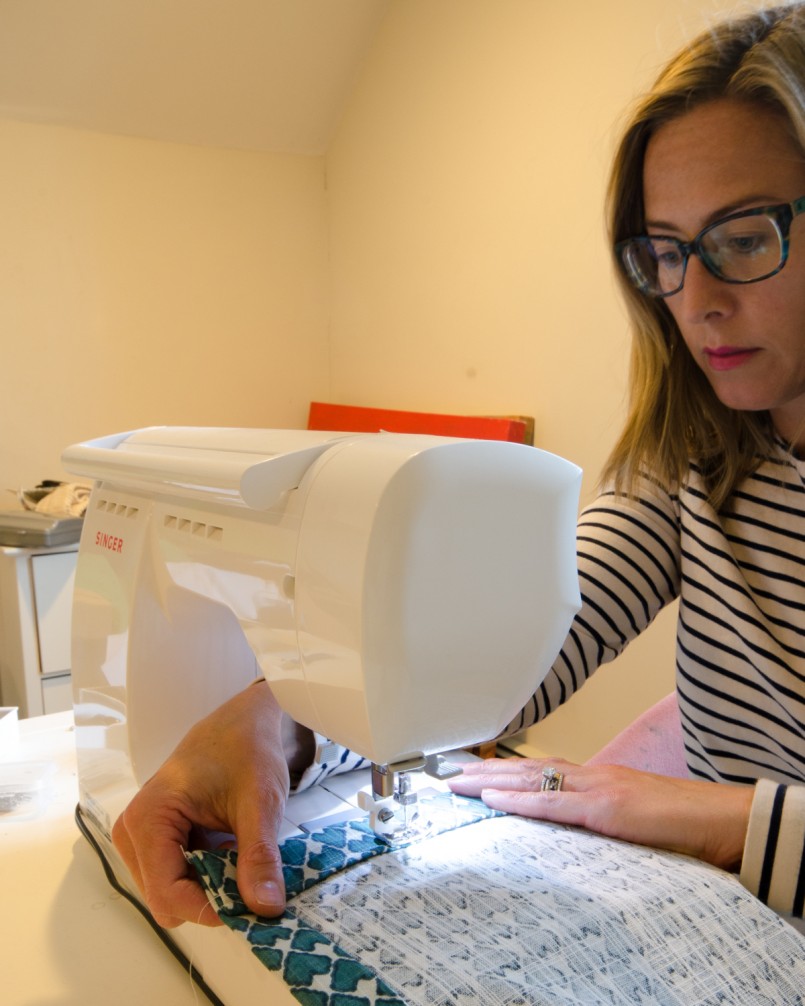 Раскроенные прямоугольники подогнуть и отстрочить на машинке по боковым и верхним срезам. Нижние оставить без обработки.