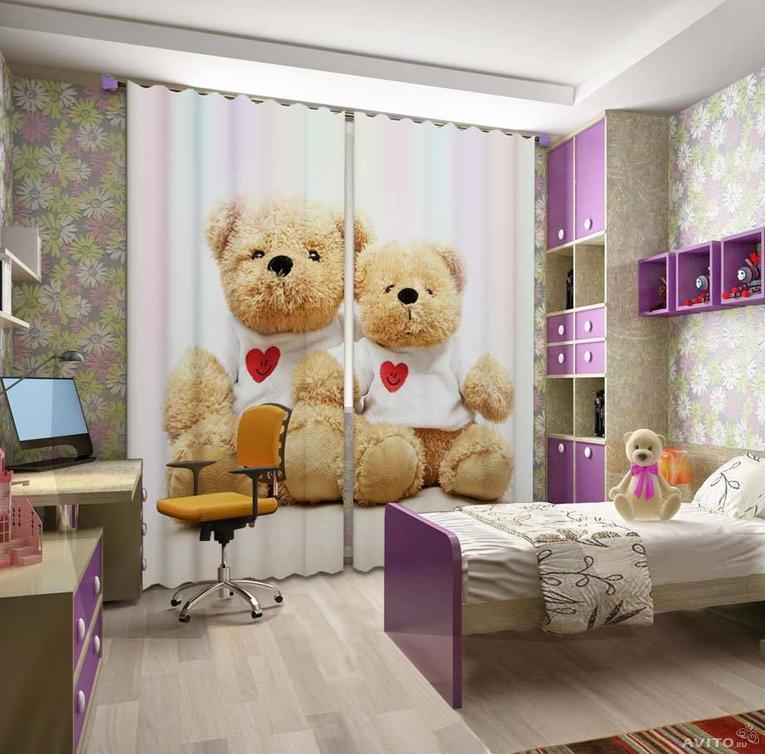Модной тенденции обустраивать детскую комнату в тематическом стиле отлично подыгрывают шторы с рисунком фрагментов любимых детских фильмов. Для дошкольников это может быть изображение веселой азбуки, а для школьников – карта мира.