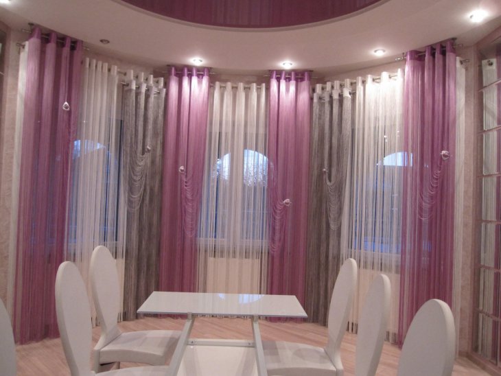 Шторы из нитей будут оригинально выглядеть в абсолютно любом помещении, причем они способны украсить не только оконные проемы, но и различные элементы пространства: ниши, арки.
