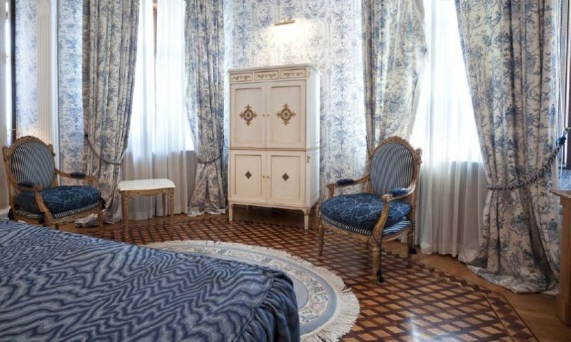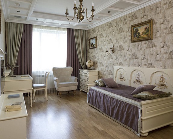 - в интерьерах, изобилующих орнаментами, узорами (отделка стен, обивка мебели, ковровые напольные покрытия) желательно декорировать оконные проемы однотонными портьерами спокойных оттенков. Для гармоничного интерьера подбираются ткани-компаньоны, поддерживающие цвет узора или основы;