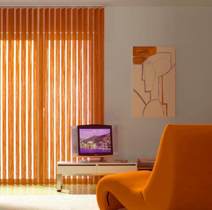В гостиной нередко используются красивые нитяные шторы с пайетками, бусинами, элементами из пластика или стекла.