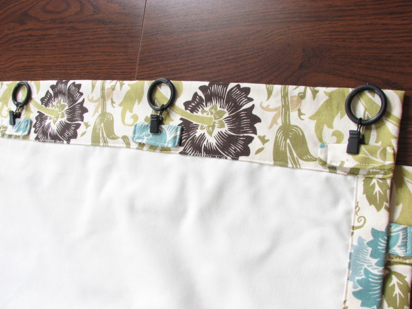 Вариантом оформления верха могут быть декоративные петли из ткани. В этом случае детали нужно подготовить отдельно, каждую полосу ткани свернуть пополам, а свободные концы вложить между слоями портьеры. Только после этого можно будет сметать края верхнего среза.