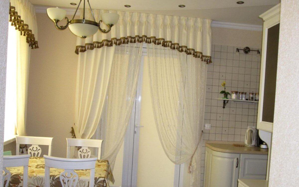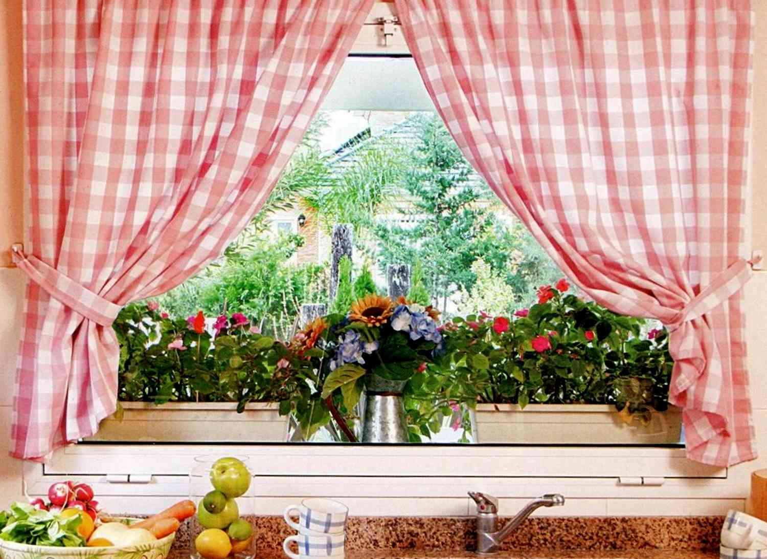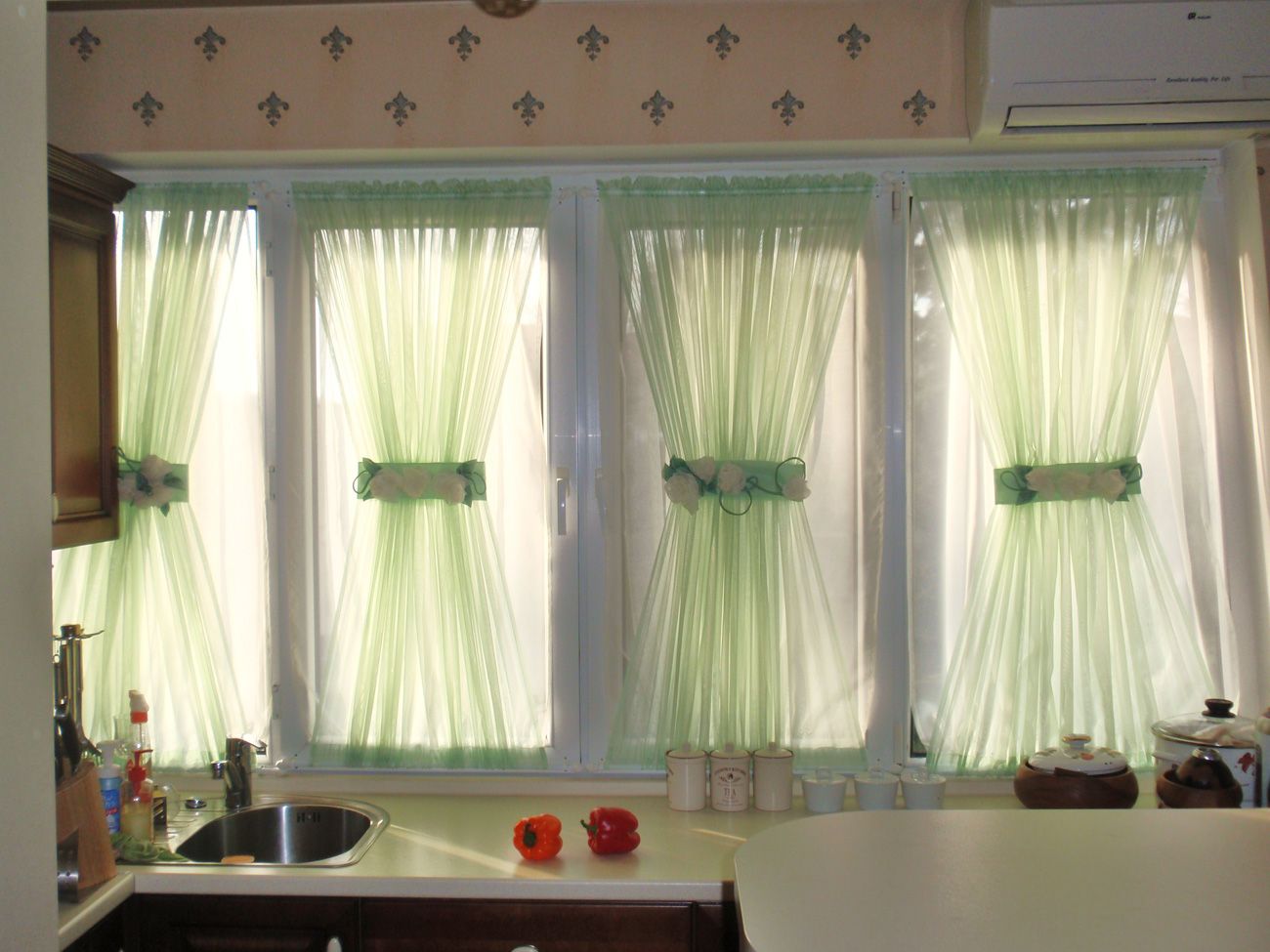 При выборе кухонных занавесок учитывается материал, цвет, форма, длина, интерьер в общем.