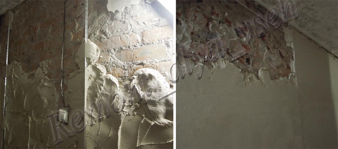 - удалить старую отделку (краску, побелку, обои, плитку);