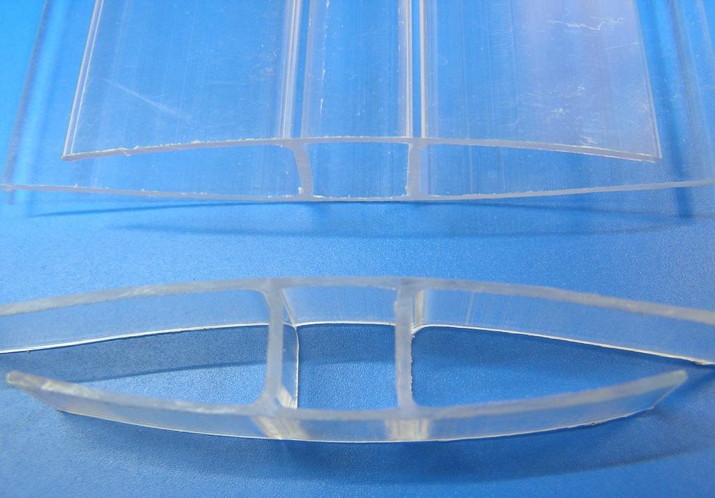 Для начала разберемся, что же это такое – стыковочный или соединительный профиль. Все просто – этот элемент представляет собой длинную пластиковую планку, внутри имеющую определенное строение (чаще всего Н-образное). Предназначается для стыковки или соединения двух листов сотового поликарбоната как на теплицах, так и на различных кровлях, перегородках и прочем.