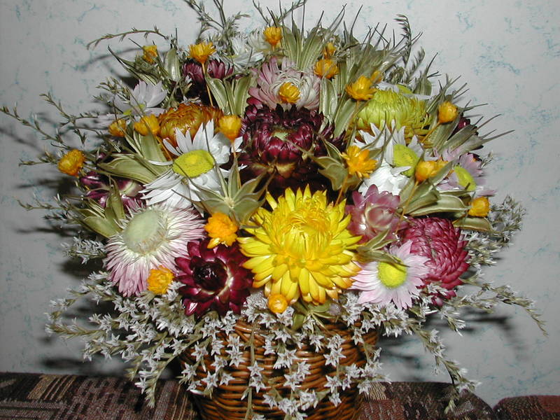 К сбору растений для сушки приступают в середине солнечного дня, когда высохнет роса. Цветы для составления зимних букетов выбирают здоровые и неповрежденные вредителями и болезнями. Синие, розовые, лиловые и оранжевые цветки полностью сохраняют свои цвета после сушки. Красные – становятся темнее.