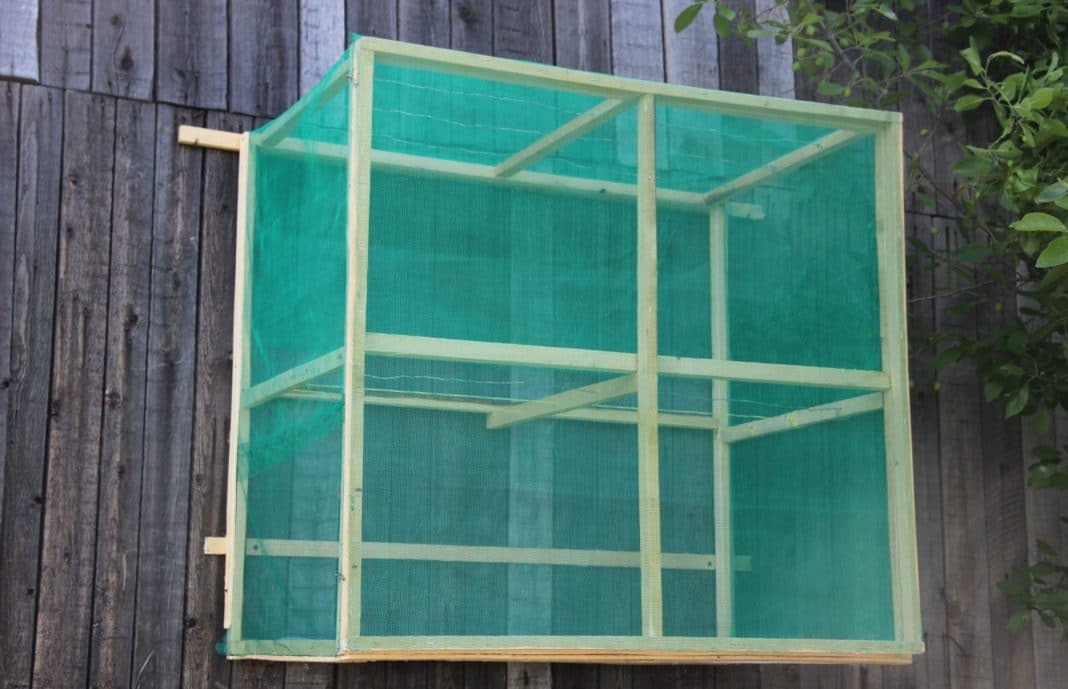 Многие, кстати, не желают делать дверцу самостоятельно, а специально подгоняют габариты ящика к размерам стандартной противомоскитной сетки на окно, чтобы использовать в качестве дверцы ее. Совсем ленивые могут и вовсе не собирать никакой каркас из бруса, просто соединив между собой несколько таких сеток.