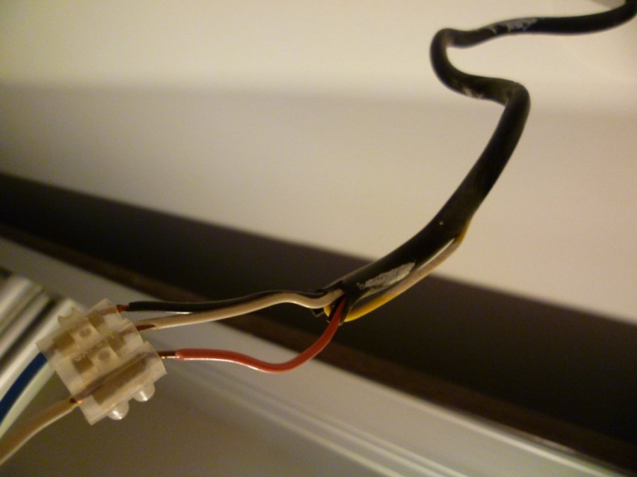 Оголить каждый кабель нужно примерно на 15 мм. Поместить в клеммник кончик коротких проводов. Другой конец соединить с кабелем подключенном к питанию