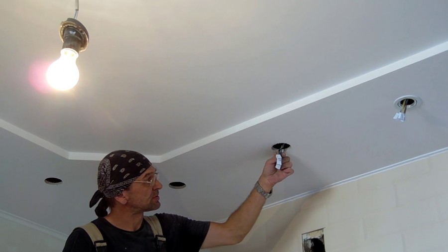 - при подключении освещения на ластиковые потолки следует позаботиться о безопасности проводки;