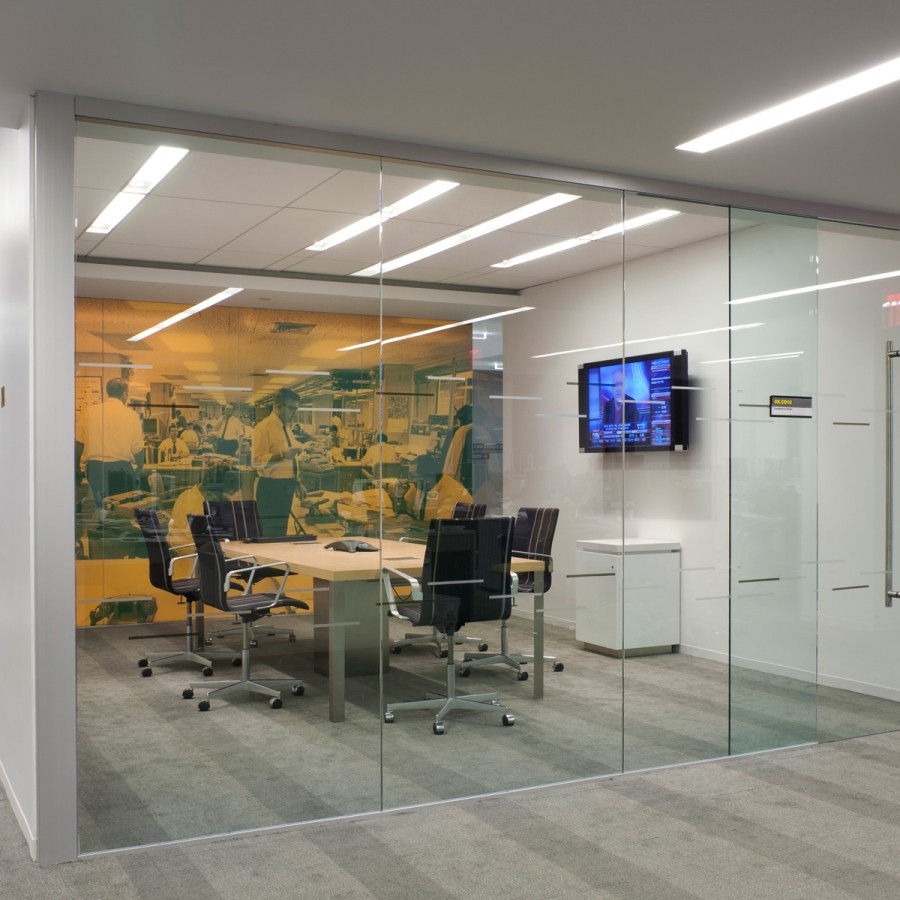 Благодаря этой хитрости, посетитель легче передвигается по помещению, получает достаточно информации даже без сторонней помощи, а светильники еще и освещают помещение вместо больших основных источников света, что тоже не может не радовать.