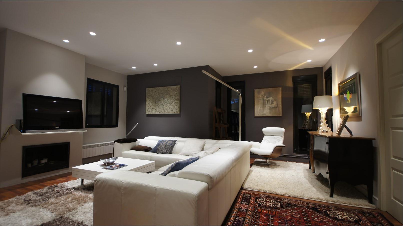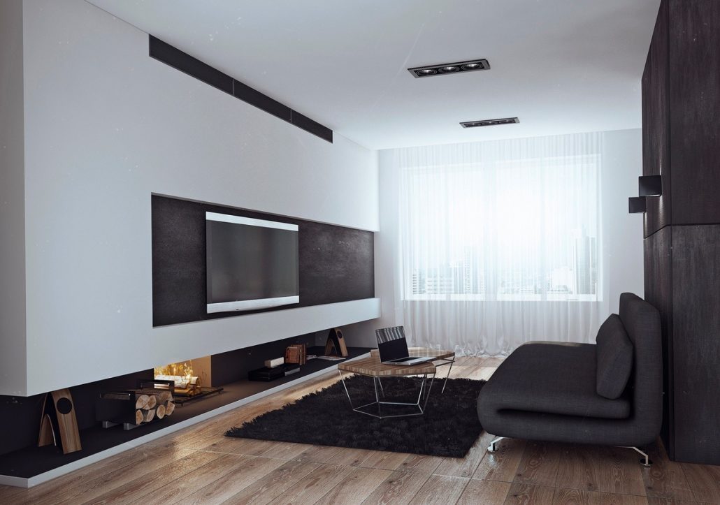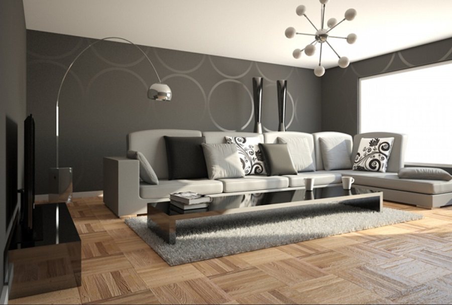 Используя всего лишь черно-белую расцветку можно создать очень стильный интерьер. В гостиной с темными однотонными обоями идеальным украшением будут черно-белые фотографии или же наоборот – цветные броские пятна. Светодиодное освещение в современном дизайне будет выглядеть особенно эффектно.