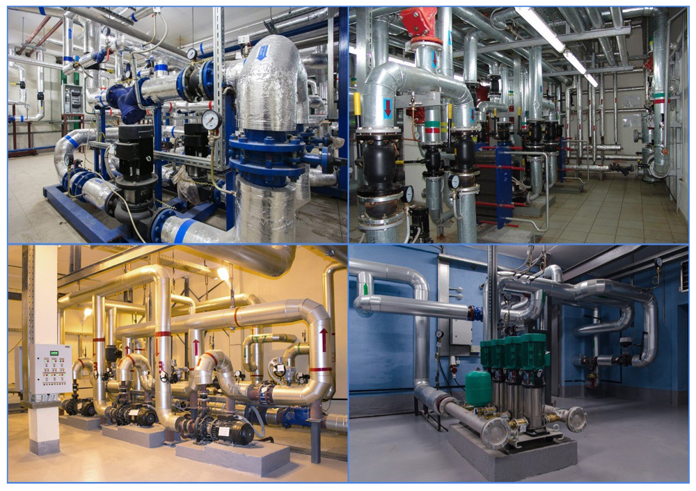- Для объектов на производстве и в местах общественного назначения при плановом понижении температуры после смены и в выходные дни реализуют объемное и терморегулирование характеристик рабочего тела в теплопунктах (ТП).