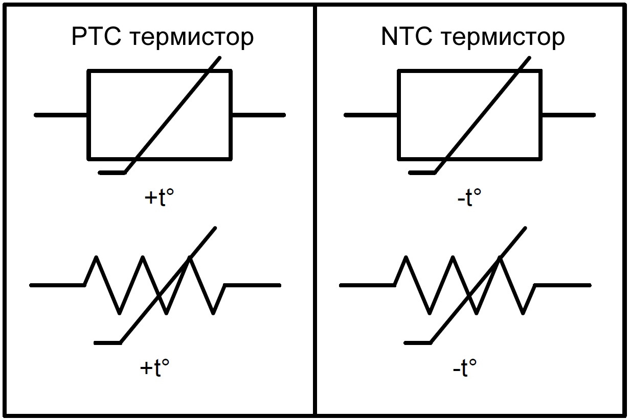 Рисунок 1 – Условные графические обозначения термисторов PTC и NTC