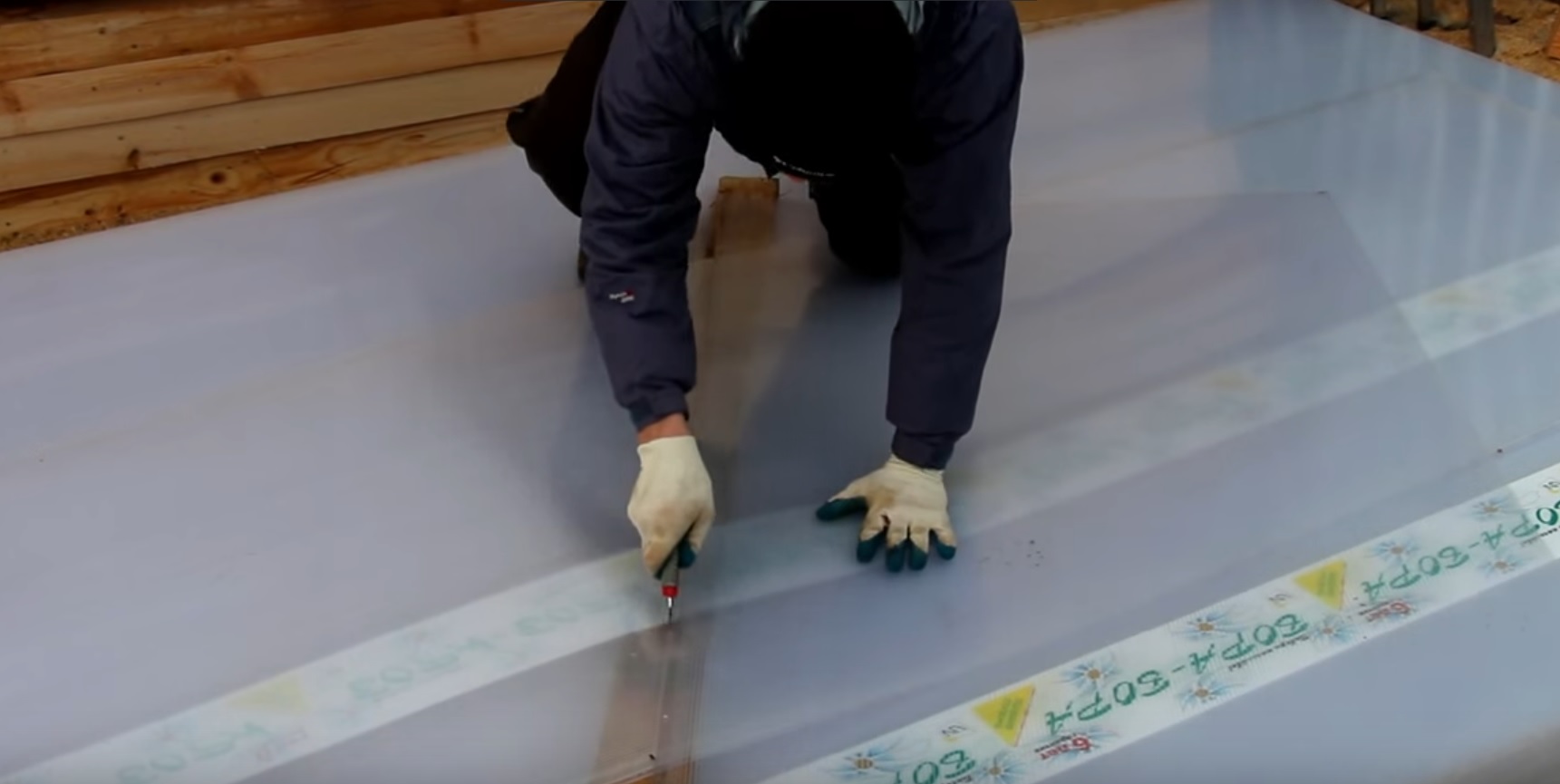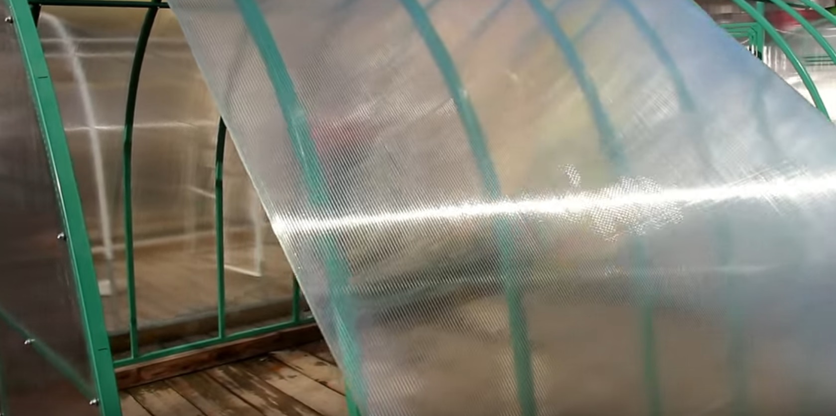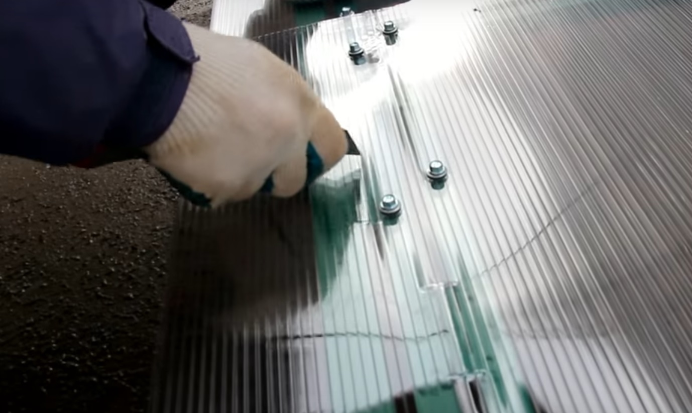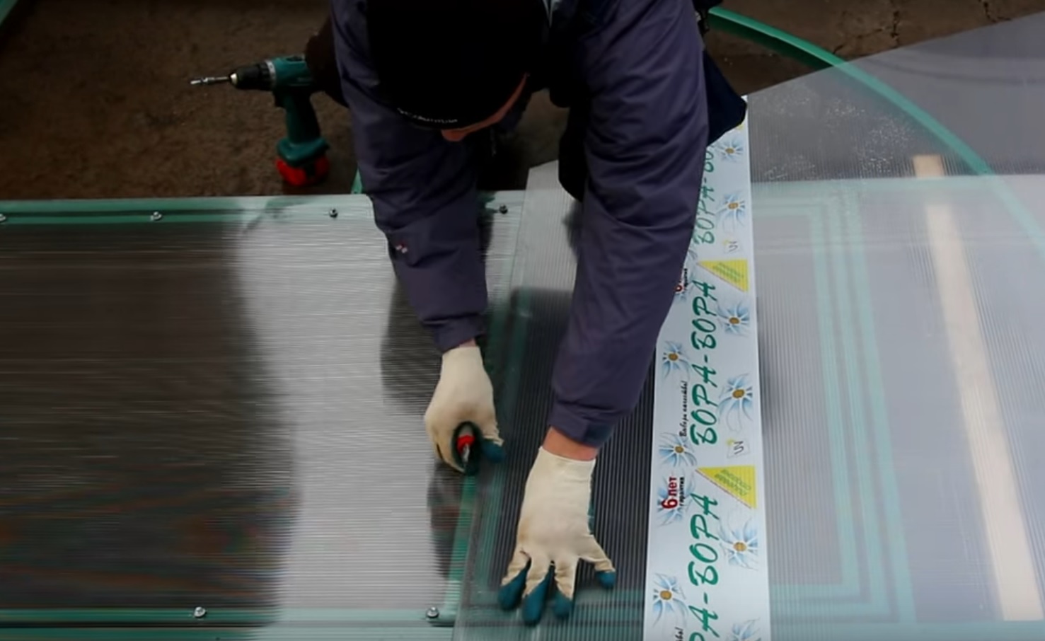 6. Загерметизировать края поликарбонатных листов пленкой с паропропускающими вставками.