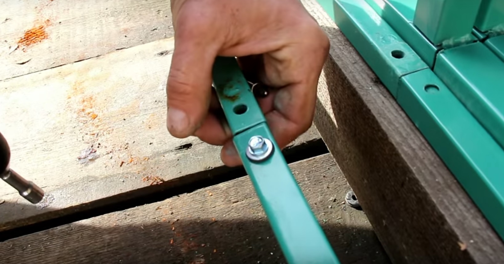 Верхняя часть теплицы собирается на земле и устанавливается как единое целое. Это немного тяжело и требуется помощь нескольких людей.