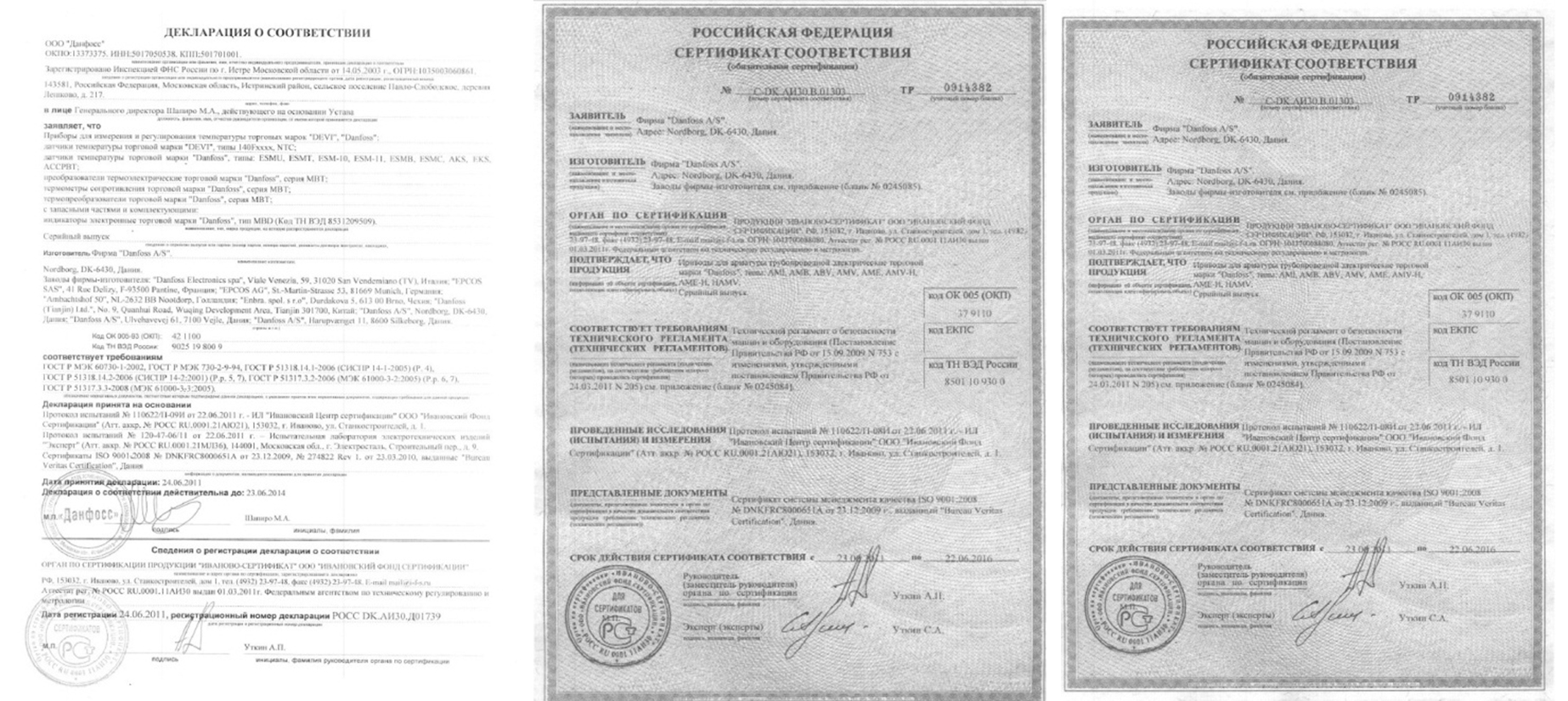 Danfoss сертификаты:
