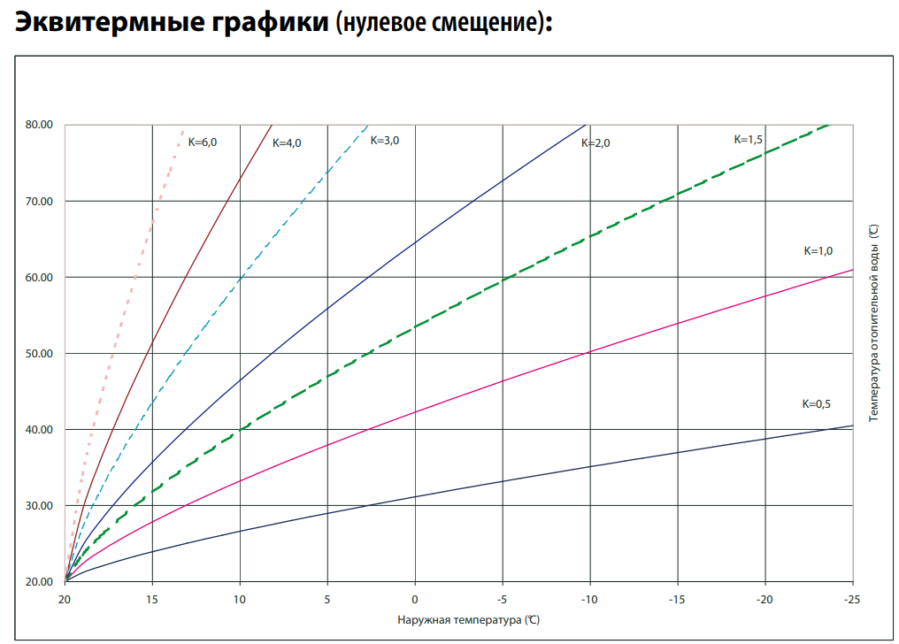 На котле необходимо выставить отопительную кривую в K=3,0, а смещение должно быть = 0!