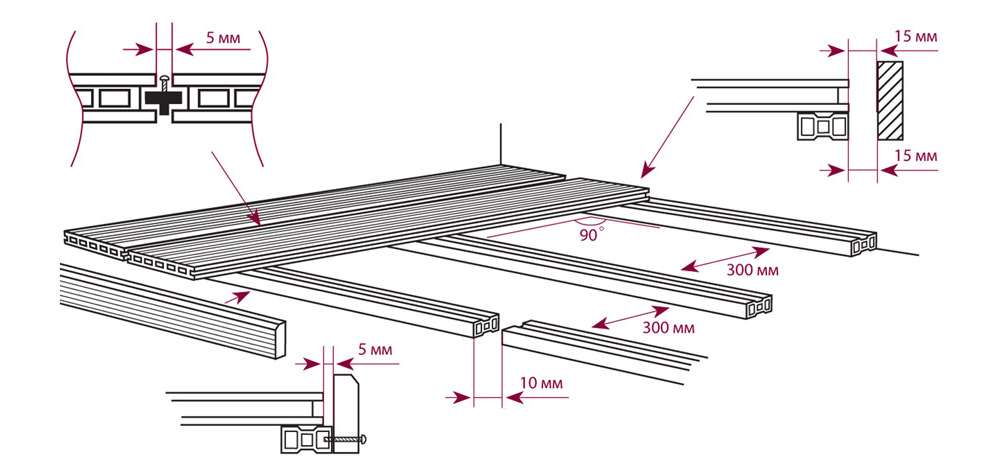 Каждый производитель предлагает свою систему монтажа, но в любом случае конструкция клипс и планок декинга предусматривает создание промежутков для отвода влаги.