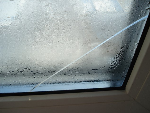 Обратите внимание на расположение и форму трещины: если она появилась в центре стеклопакета и имеет форму буквы С, это означает, что стеклопакет хранился производителем неправильно, а помещение не отапливалось
