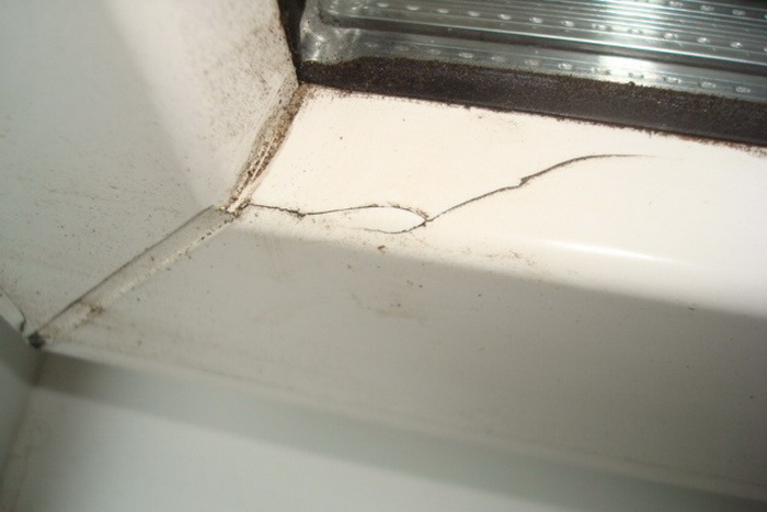 Главным фактором появления трещин, связанным с неправильной установкой конструкции, является банальный перекос окна – распределение нагрузок происходит не равномерно, а потому, при превышении определенного значения, пластиковый профиль может, просто-напросто, не выдержать сверхнагрузок и пойти трещинами. Подобное проявление дефектов характерно для окон больших размеров, так как имея одинаковый с окнами стандартных размеров профиль, разница в массе конечного изделия может быть весьма существенна.