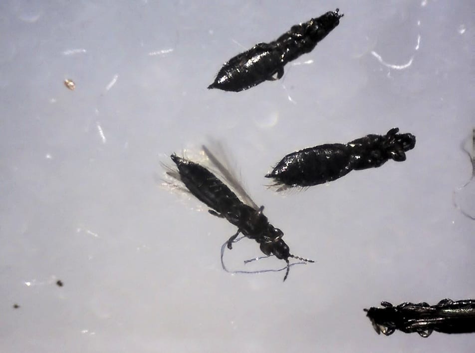Трипсы отличаются от других насекомых-паразитов особенностями своего внешнего вида. На фото можно увидеть отличительные характеристики вредителя: