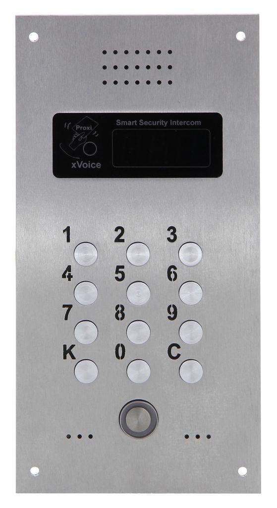 Панель вызова. На ней расположен ряд чисел, которые необходимы, чтобы человек стоящий за дверью набрал код и отправил поступающий сигнал вызова на установленную в квартире домофонную трубку. Обычно таким кодом служит номер квартиры. Помимо этого панель оборудована специальным считывающим устройством. Оно позволяет с помощью ключа произвести открывание запирающего замка, который расположен на входной двери.