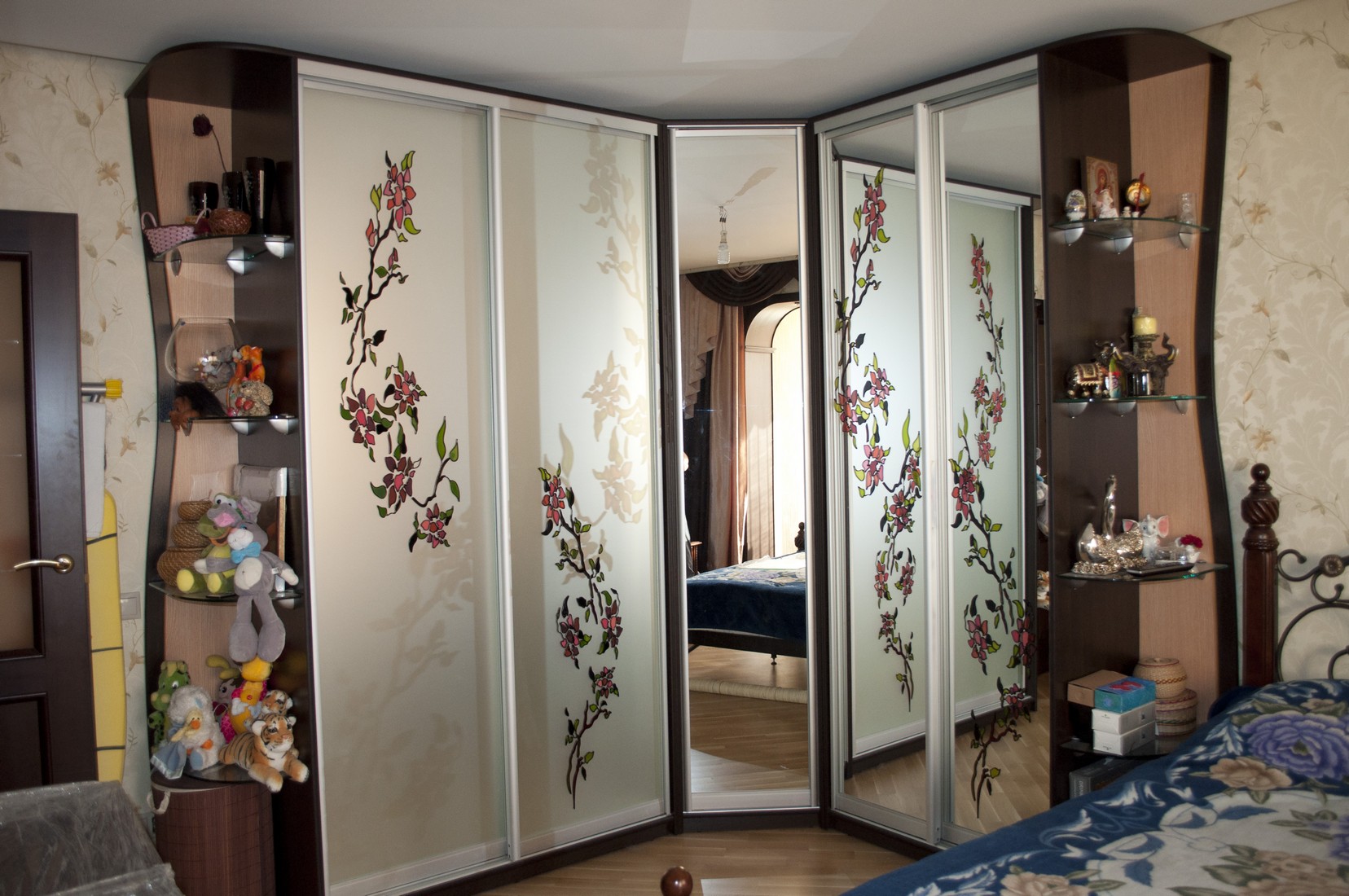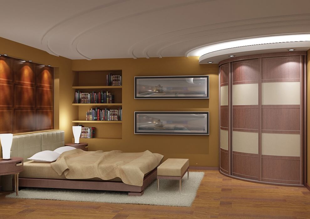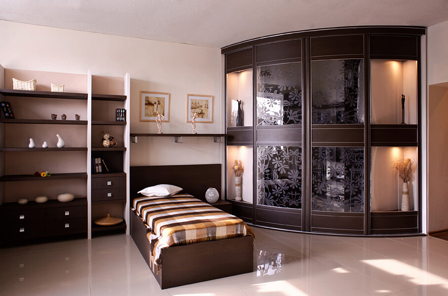 Угловой шкаф с вогнутой конструкцией — лучшее решение для маленькой спальни