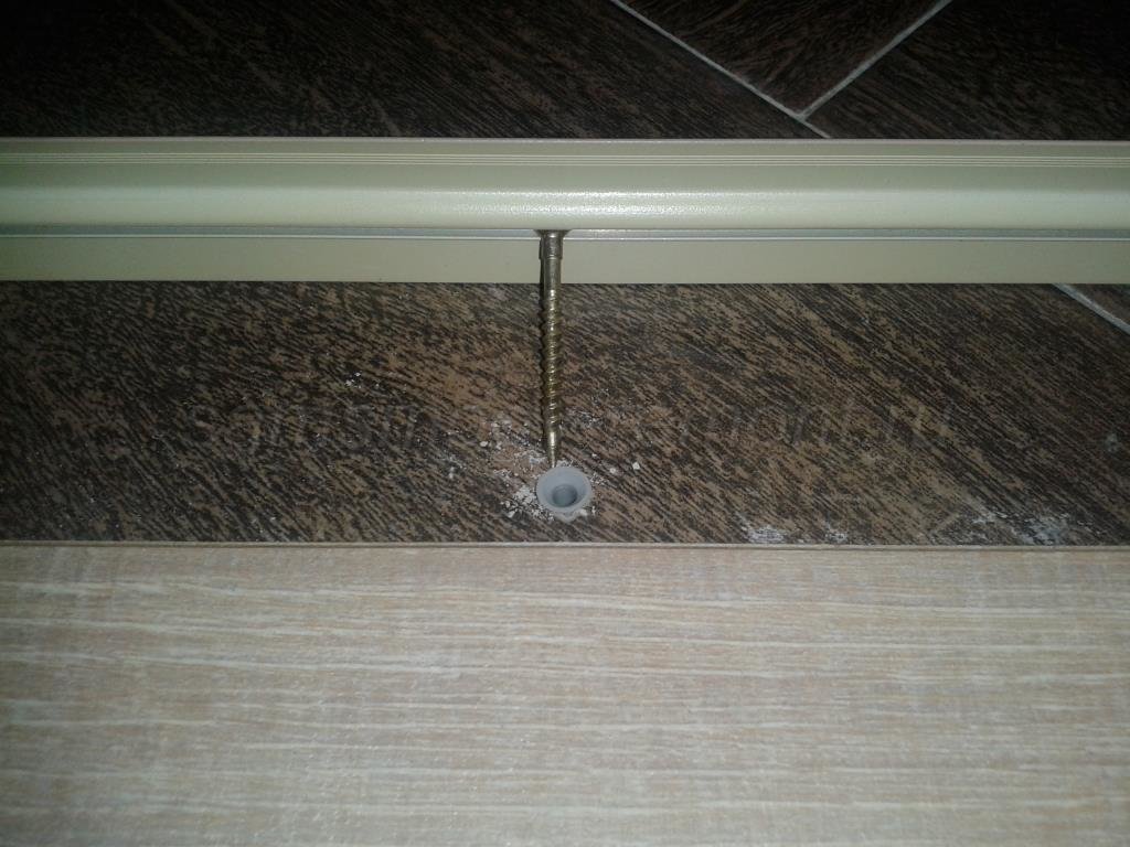 Порожки используются чаще, чем другие элементы для стыковки. Это обусловлено простотой их монтажа, доступностью и дешевизной – купить порожки можно в любом строительном магазине за небольшие деньги. Профиль просто прикручивается или приклеивается (в зависимости от типа изделия) на зазор, оставшийся между уложенными участками покрытий. Этот зазор будет достаточным для того, чтобы ламели могли спокойно расширяться при необходимости, и покрытие не будет вздыбливаться. Кстати, порожки могут быть изготовлены из самых разных материалов, но чаще всего используются стандартные металлические. Длина у них тоже может варьироваться.