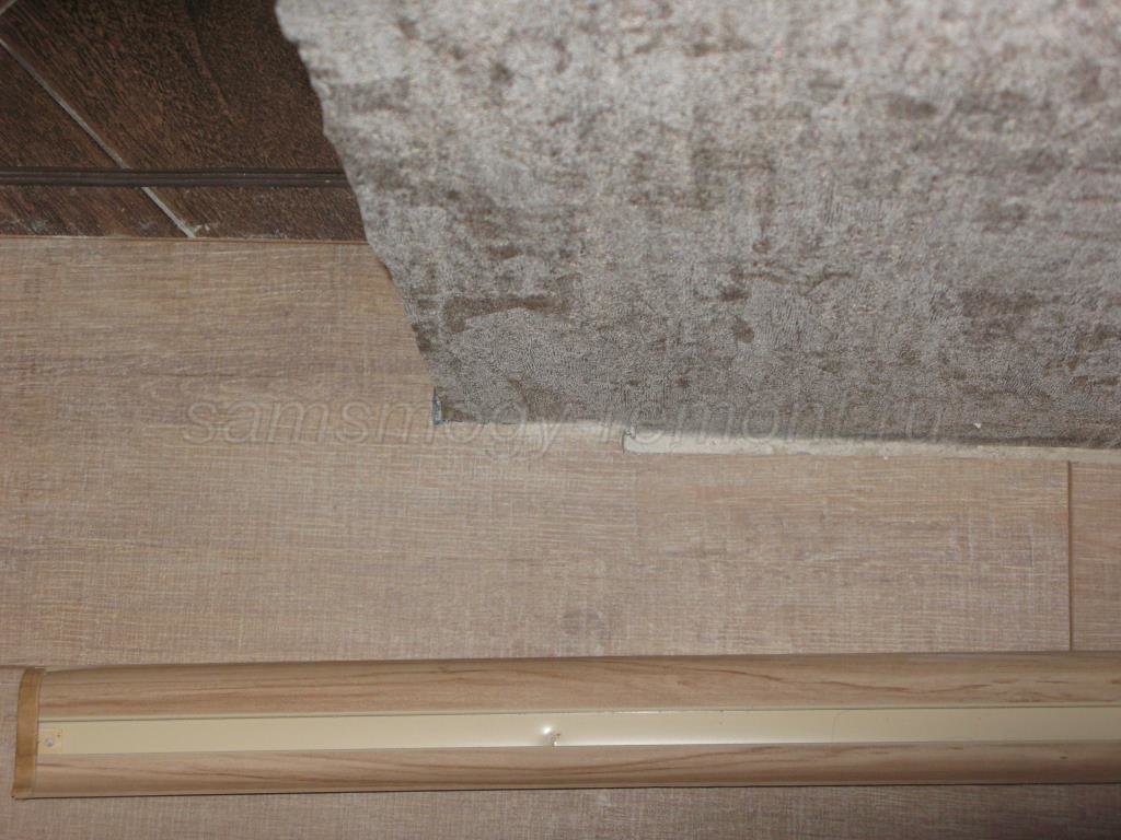 Герметик и пена используются реже, так как они могут испачкать поверхность покрытия. Но зато с их помощью можно скрыть зазоры любой ширины и состыковать участки покрытий, имеющие довольно причудливые формы