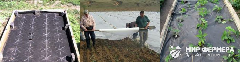 - Весной на выбранную грядку ровным слоем раскладывается полотно;