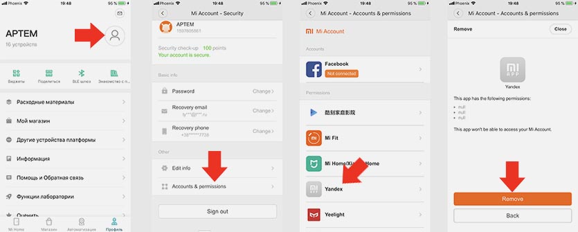 1. В приложении Mi Home переходим раздел Профиль.