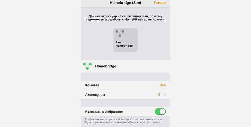 Когда девайс появится в приложении Дом, установку и настройку HomeBridge можно считать завершенной.