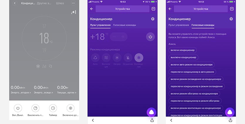 Для каждого устройства приведен список команд для голосовой активации тех или иных функций.