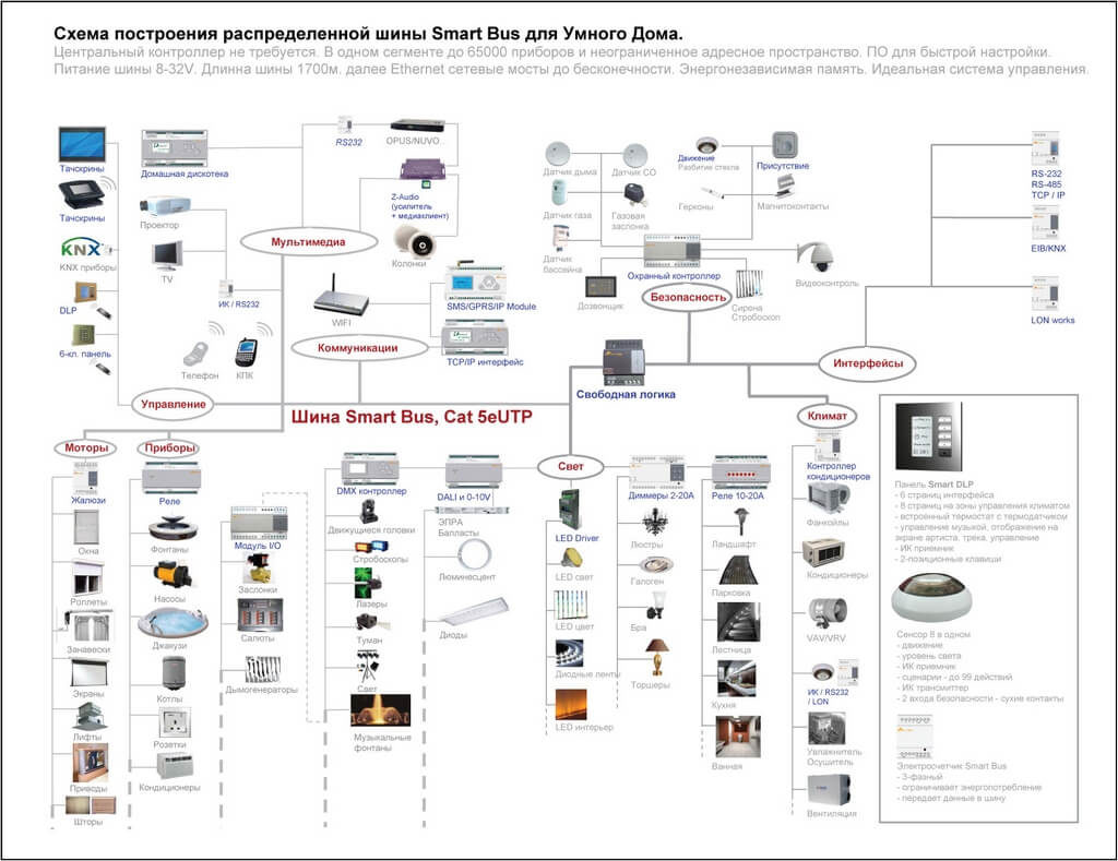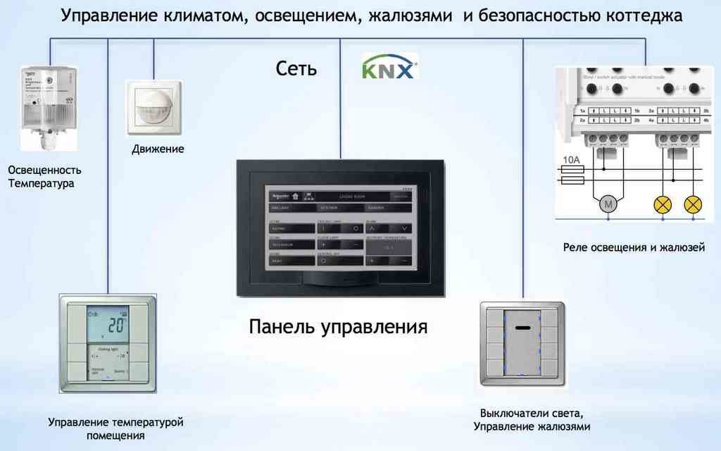 - целым домом можно управлять, используя при этом лишь 1 щитовую базу;