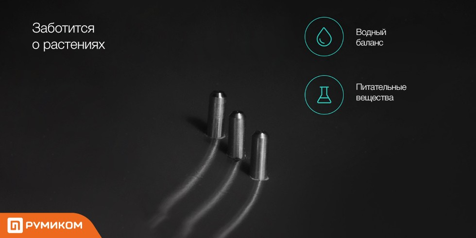 Емкостные датчики контроля бесконтактного типа и чипы мониторинга установлены в стенках горшка. Три датчика, выполненные из нержавеющей стали, расположены в центральной части, чтобы наблюдать за состоянием корневой системы, не вредя ей.