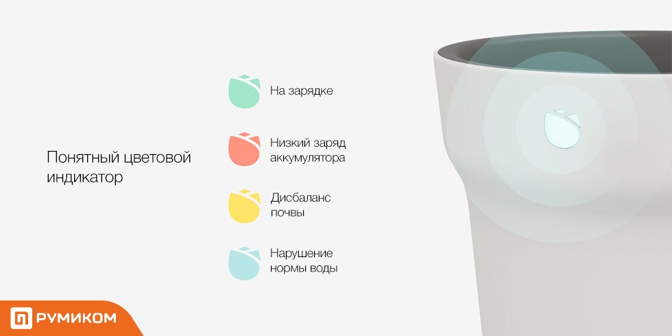 Цвета и частота мигания индикатора отображают разное состояние и потребности растений. С чем бы ни возникли проблемы – Вы о них узнаете.