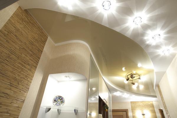 Даже причудливые и оригинальные многоуровневые натяжные потолки можно самостоятельно снабдить не менее оригинальными светильниками.