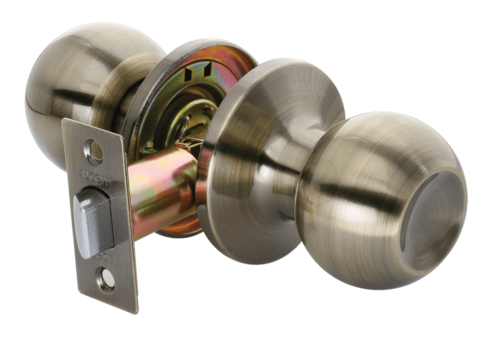 Поворотные или ручки-кнобы. Ими открывают дверь, не нажимая на рукоятку. Операция выполняется за счет поворота держателя. Такого рода устройство может быть оснащено фиксатором, который блокирует язычок замка. Это позволяет закрыть дверь с внутренней стороны. Ручки очень удобны в эксплуатации, так как имеют круглую форму.
