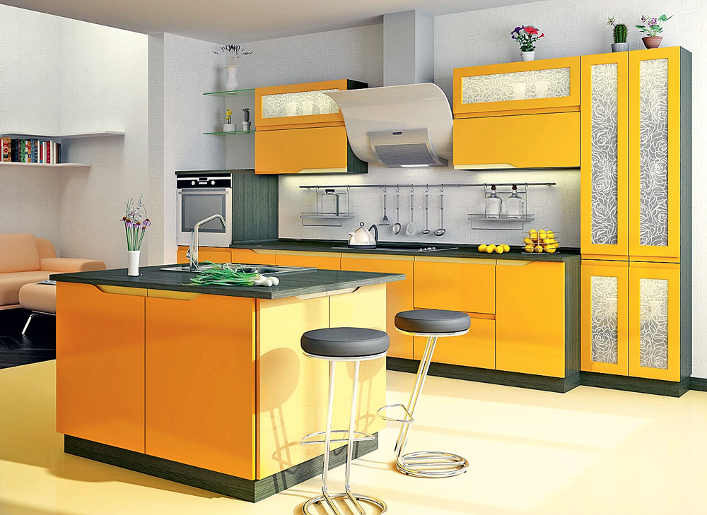 - Висящие кухонные шкафы не должны загромождать собой вентиляцию и портить геометрию кухонного интерьера.