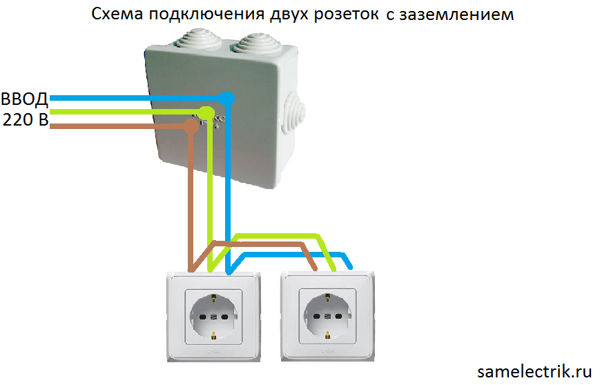 Как правило, мощность кухонной вытяжки не превышает 500 Вт, поэтому если рядом нет розетки, лучше всего подключиться шлейфом. Сделать это достаточно просто – устанавливаете новую розетку вблизи прибора и от ближайшей выводите перемычки, как показано на схеме:
