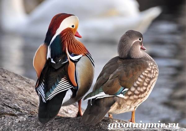 Бывают аномальные исключение среди этих видов птиц – белые утки мандаринки. Они белоснежного цвета и очень сильно отличаются от своих собратьев. Доказательством их родственной связи служат крылья в виде седла.
